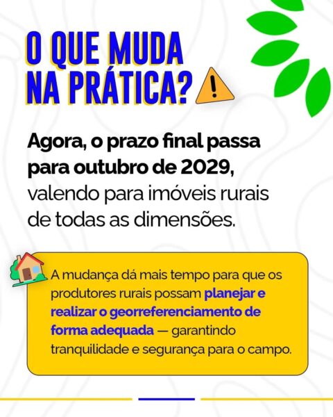 Agora, proprietários rurais têm até outubro de 2029 para regularizar seus imóveis.🗓️